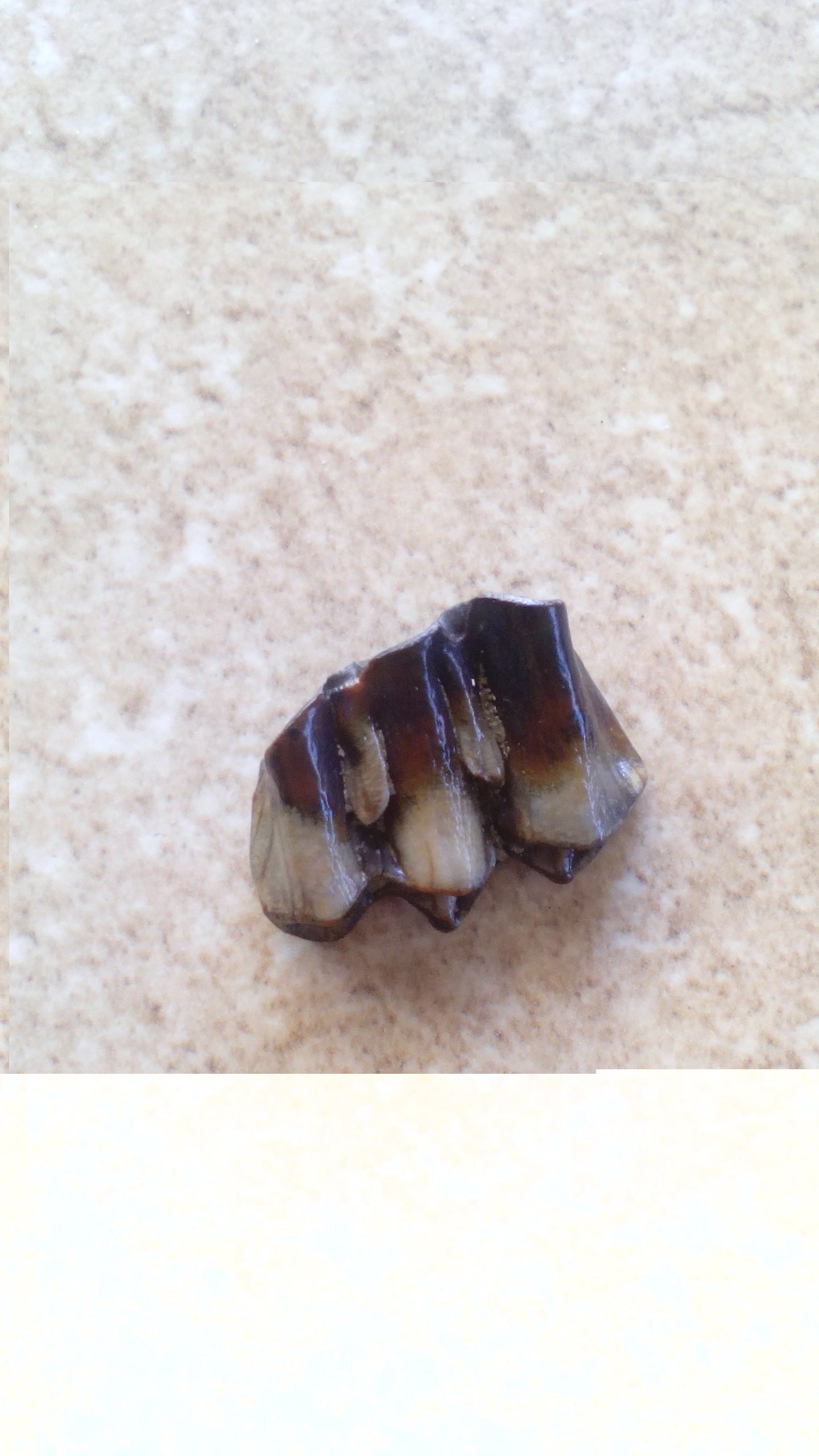 Wydaje mi się, że jest to jakiś ząb, ale nie jestem pewny. Jest to długości około 3cm.
