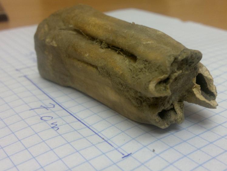 To pierwsze wygląda na róg jakiegoś przedstawiciela Bovidae, a to drugie to ząb jakiegoś ssaka roślinożernego. Nie wiem jakie to zwierzaki dokładnie, może się ktoś ze ssakarzy forumowych wypowie.