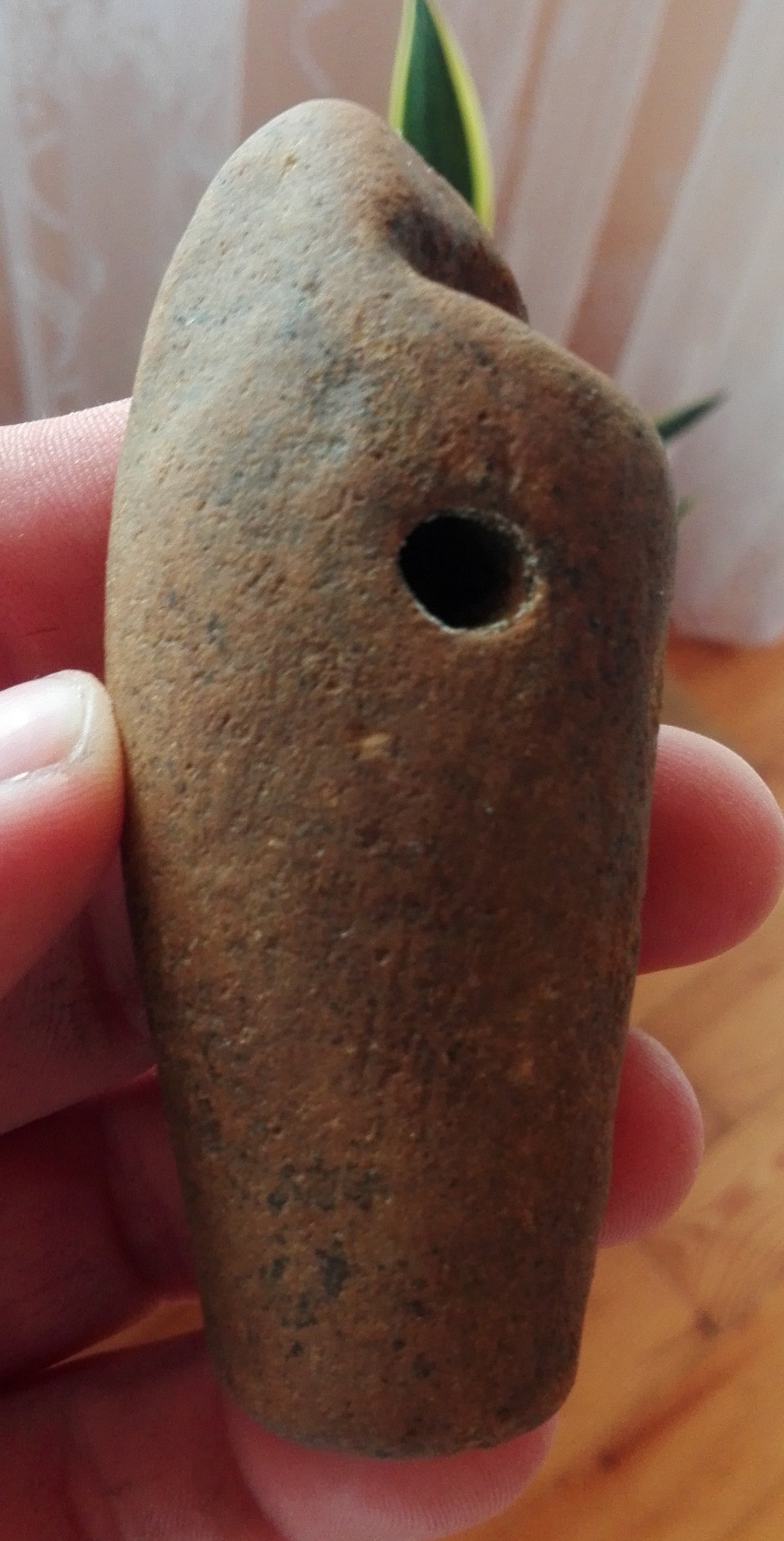 Zwykły otoczak z naturalnymi otworami.