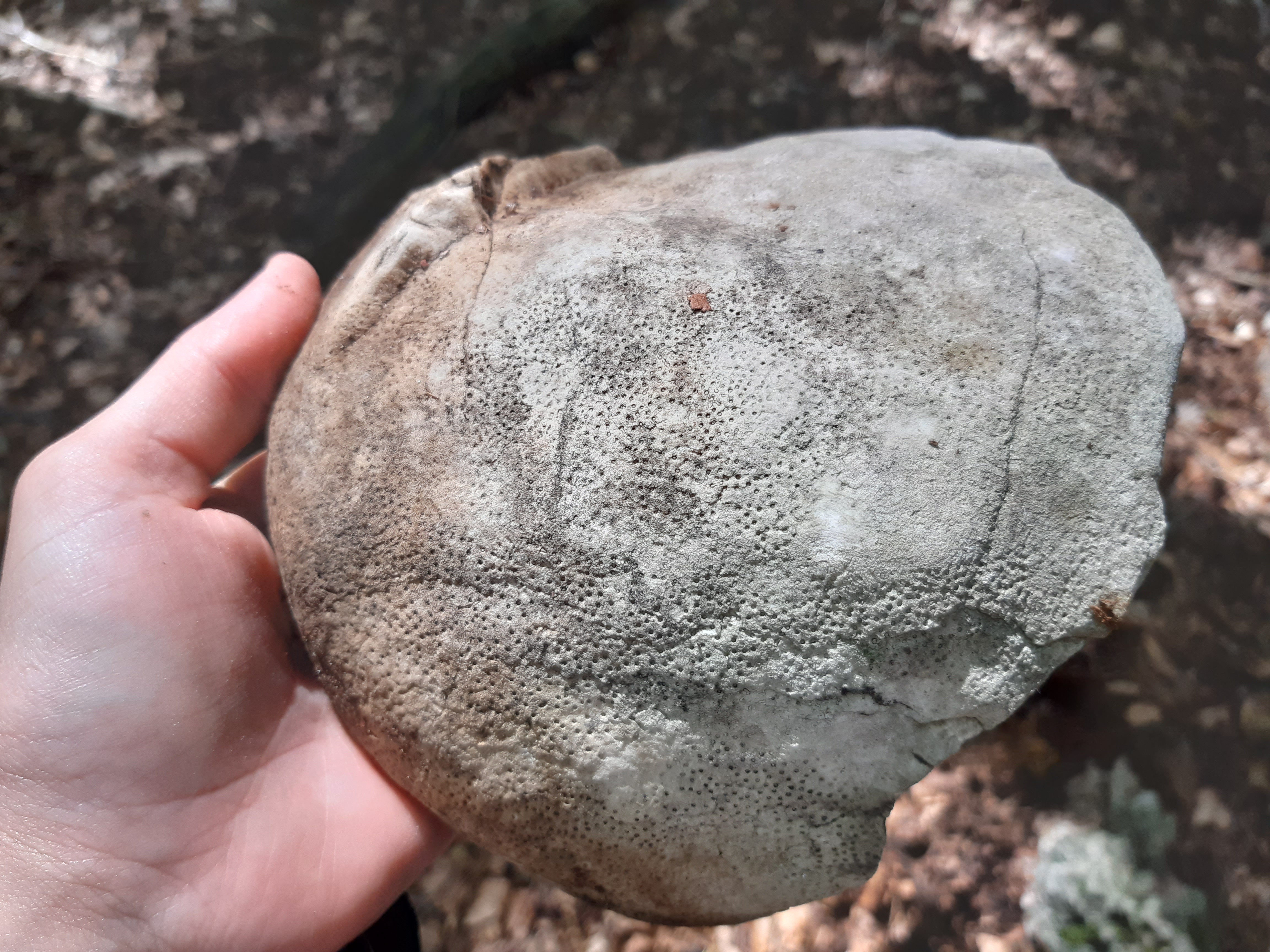 Dzień dobry, dziś znalazłam w lesie ciekawy kamień. Wygląda mi na skamieniałą roślinę, ale to tylko moje domysły. Ma kształt huby nadrzewnej. Poszukuję pomocy w identyfikacji.