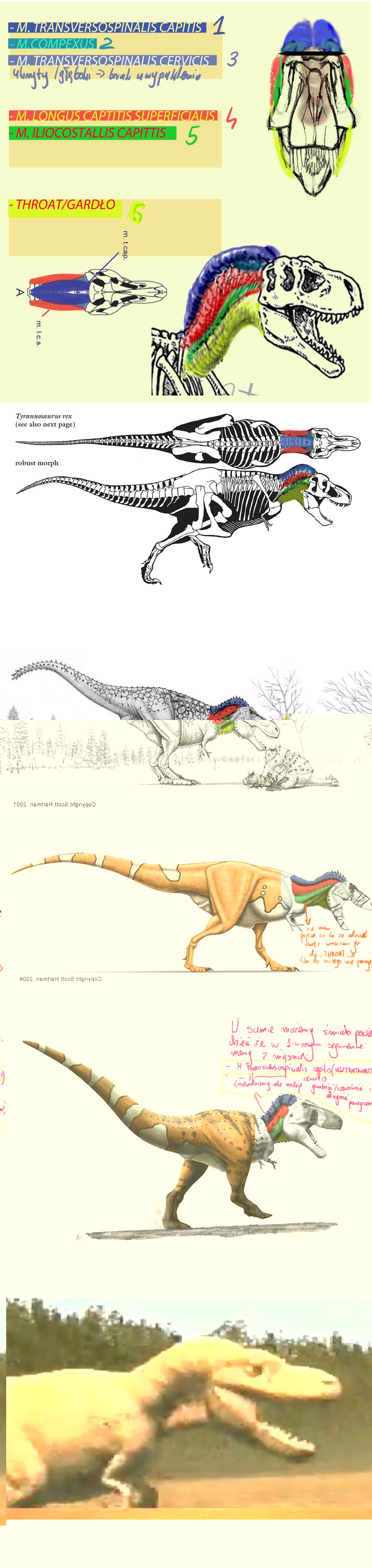 Od dłuższego czasu "pastwię" się na analizą w/w szczebla mięśni u dinozaurów, gdyż cała muskulatura dinozaurów została w sumie przeanalizowana, tylko z tym odcinkiem mam problem <pomimo dostępnych materiałów...>