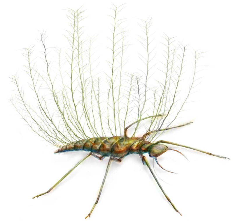 To larwa sieciarki Hallucinochrysa diogenesi z kredy Hiszpanii. No a właściwie fragment jej rekonstrukcji. Te wyrostki służyły gromadzeniu śmieci, stąd epitet gatunkowy (zob. zespół Diogenesa). Funkcja - kamuflaż.