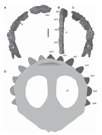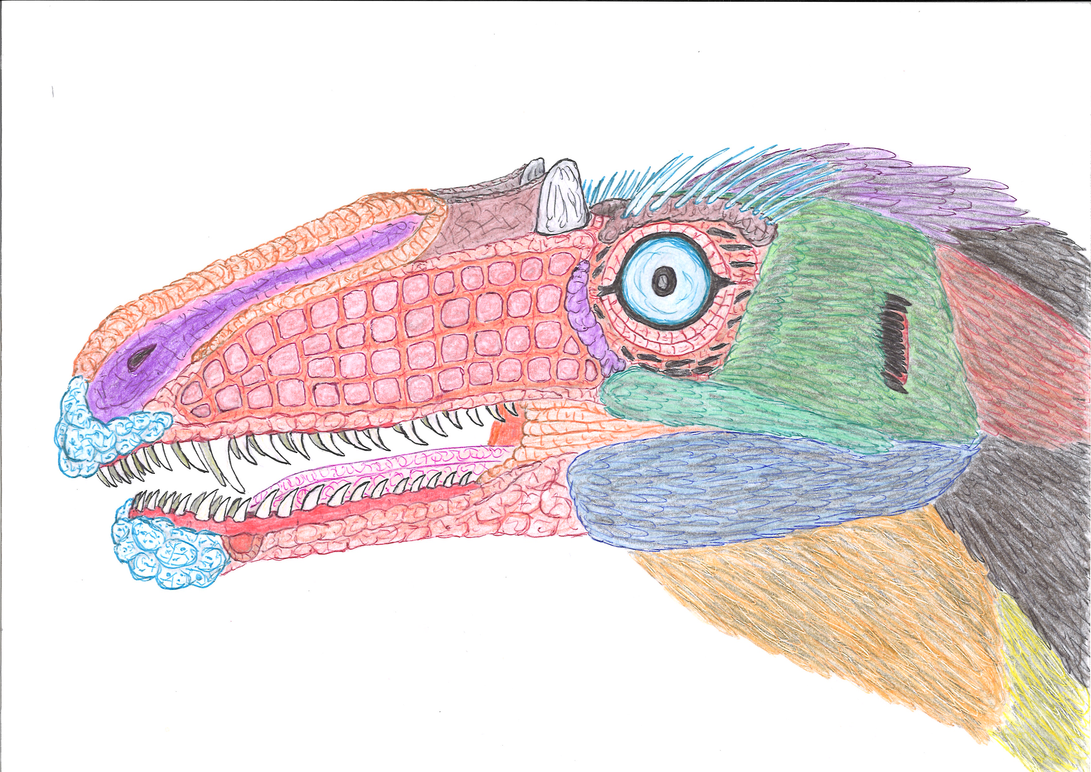 Caihong powinien mieć tylko ten dziwny mały różek łzowy. Nie widzę żadnych podstaw do dorabiania mu grzebienia nosowego. Nie widzę też szczególnych otworów w kości przedszczękowej i żuchwie.