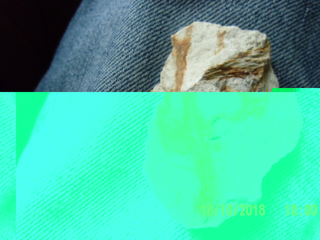 Ze szczątków roślinnych na tym kawałku skały może być tylko kawałek drewna. Trudno zidentyfikować, ewentualnie jakby się zrobiło szlif i przy w miarę zachowanych kształtach komórek, można by się pokusić o to.