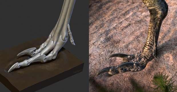 Ciekawe, że pozostałe palce nie uległy redukcji jak u konia. Można sobie spekulować dlaczego tak było. Czy to analogia do uniesionych w górze sierpowatych szponów deinonychozaurów? Czy może wesperzaur chodził raz na jednym, a raz na trzech palcach? Przypomina mi się, że niektóre jaszczurki stoją tylko na dwóch nogach jak są na gorącym piasku, a pozostałe trzymają uniesione w powietrzu. Może wesperzaur biegał na jednym palcu ze względu na gorący piasek?
