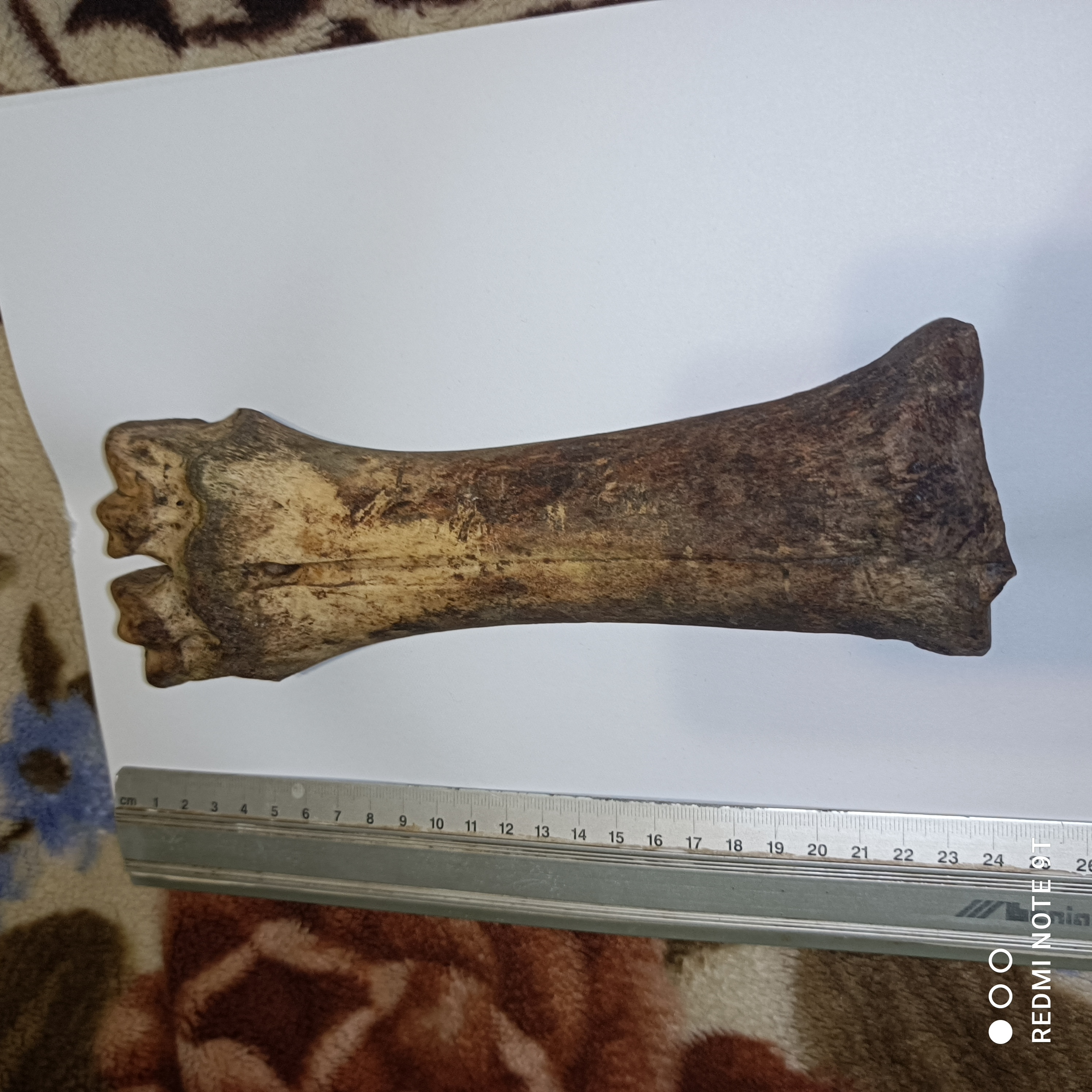 W jakich okolicznościach znaleziona została ta kość i gdzie? Bo wygląda na śródstopie dużego parzystokopytnego z rodziny pustorożców, może to być żubr,tur lub zwykła krowa.