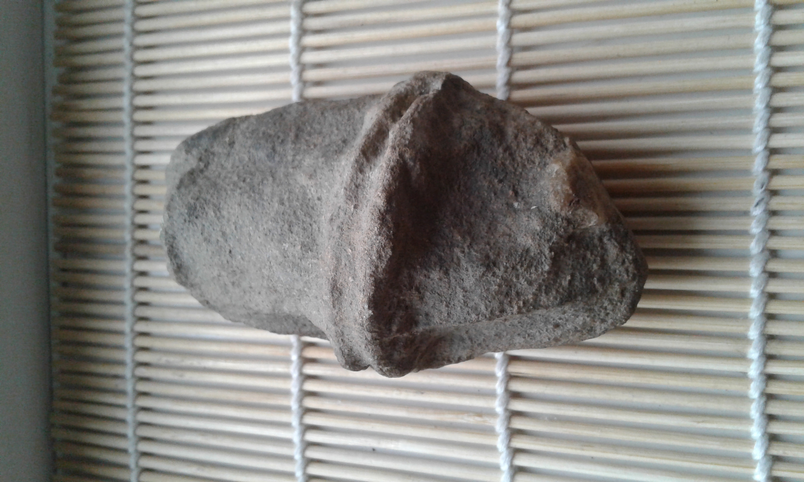 Zachowując daleko idącą ostrożność powiem, że ów okaz posiada wiele cech rolniczego toporka z neolitu. Kolega archeolog odpowiedział: "Neolit. Albo zużyty podczas prac polowych albo niedokończony przez wyrobnika". Ja też się orientuję, gdy chodzi o zabytki archeologiczne (lubię książki dotyczące historii). Mówię szczerze.