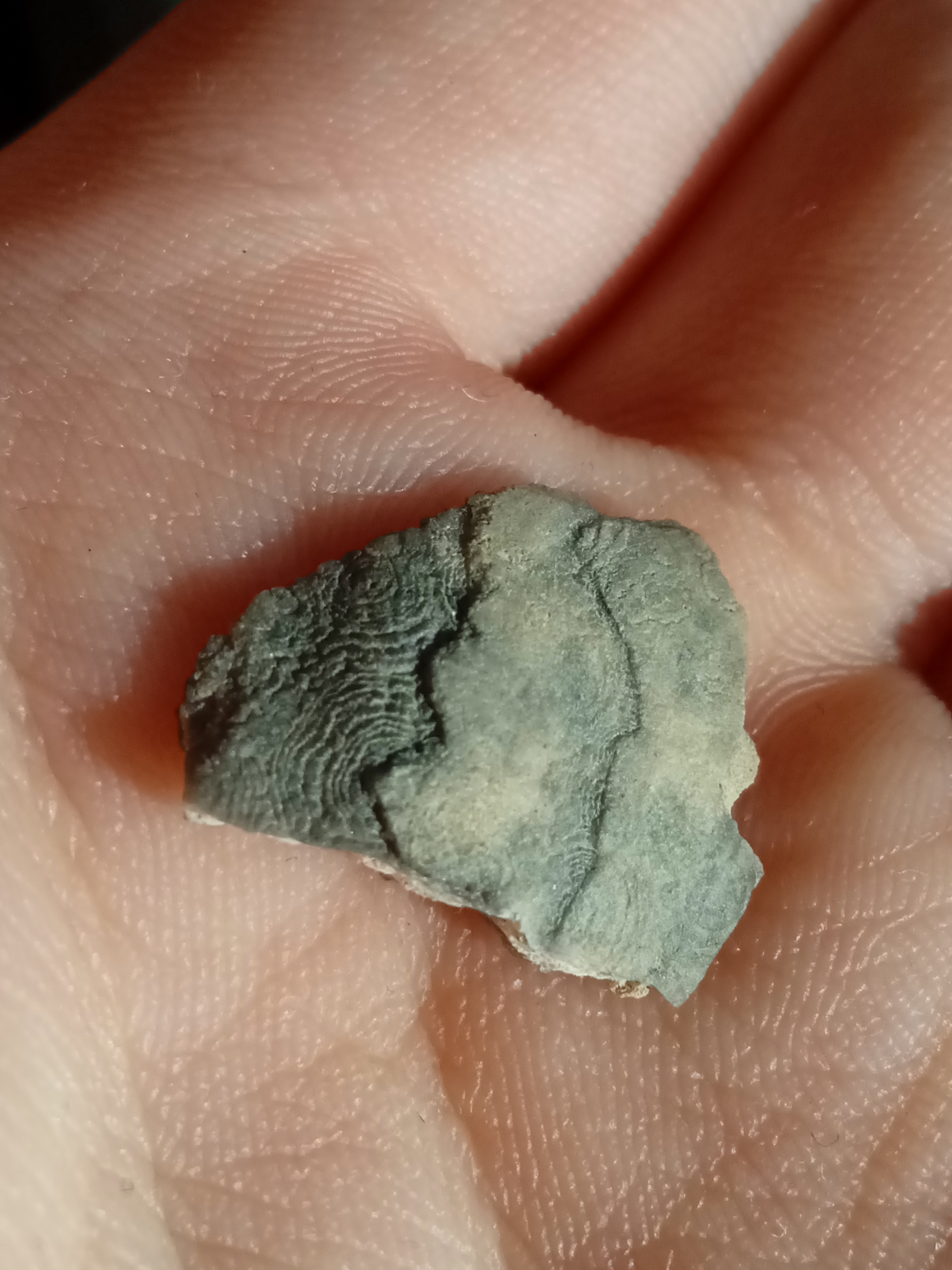 To forma minerału - chalcedonu, ale często powstaje na powierzchni skamieniałości, np. skorup ramienionogów. Tu nie widać co jest pod spodem.