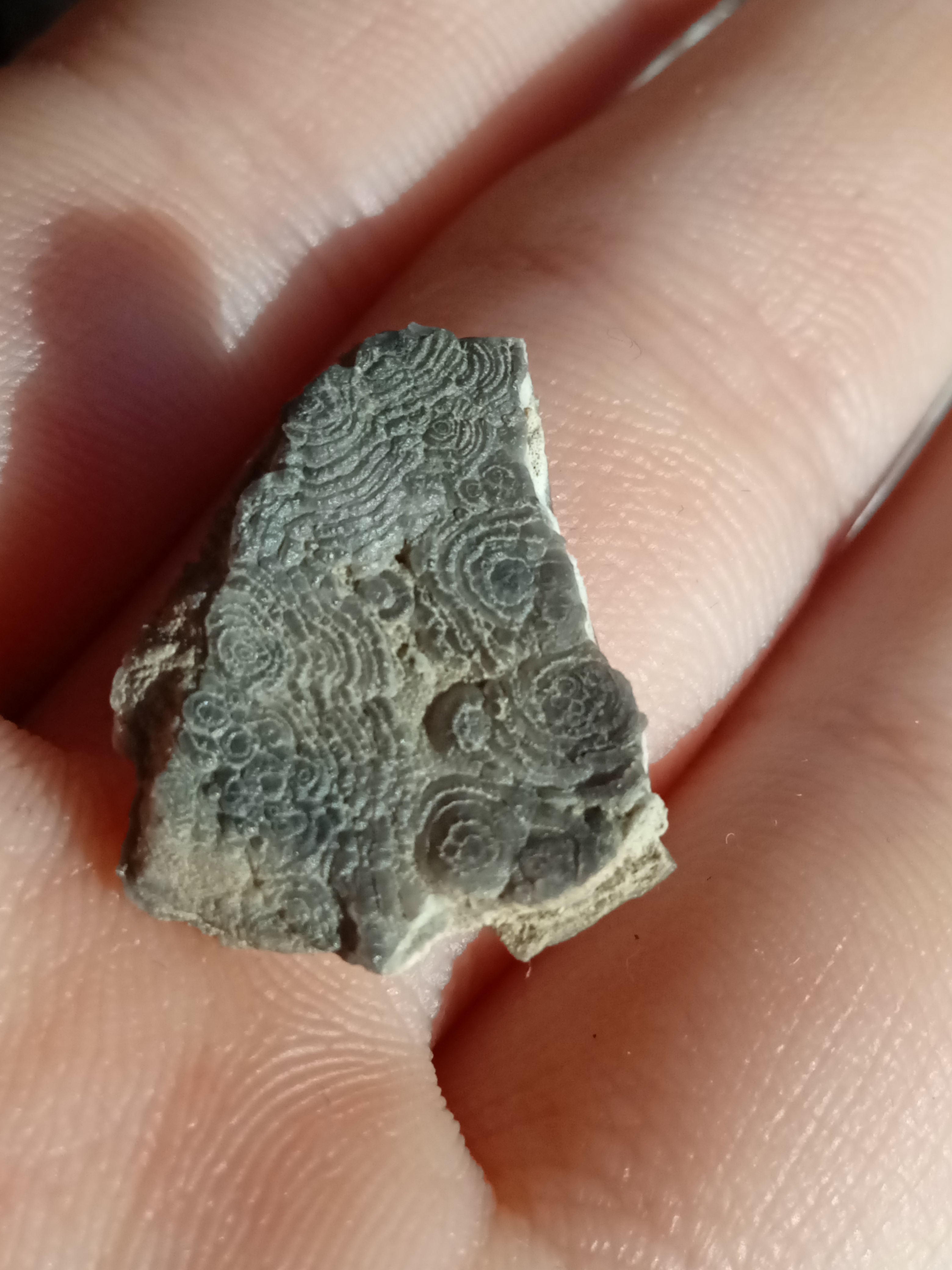 To forma minerału - chalcedonu, ale często powstaje na powierzchni skamieniałości, np. skorup ramienionogów. Tu nie widać co jest pod spodem.
