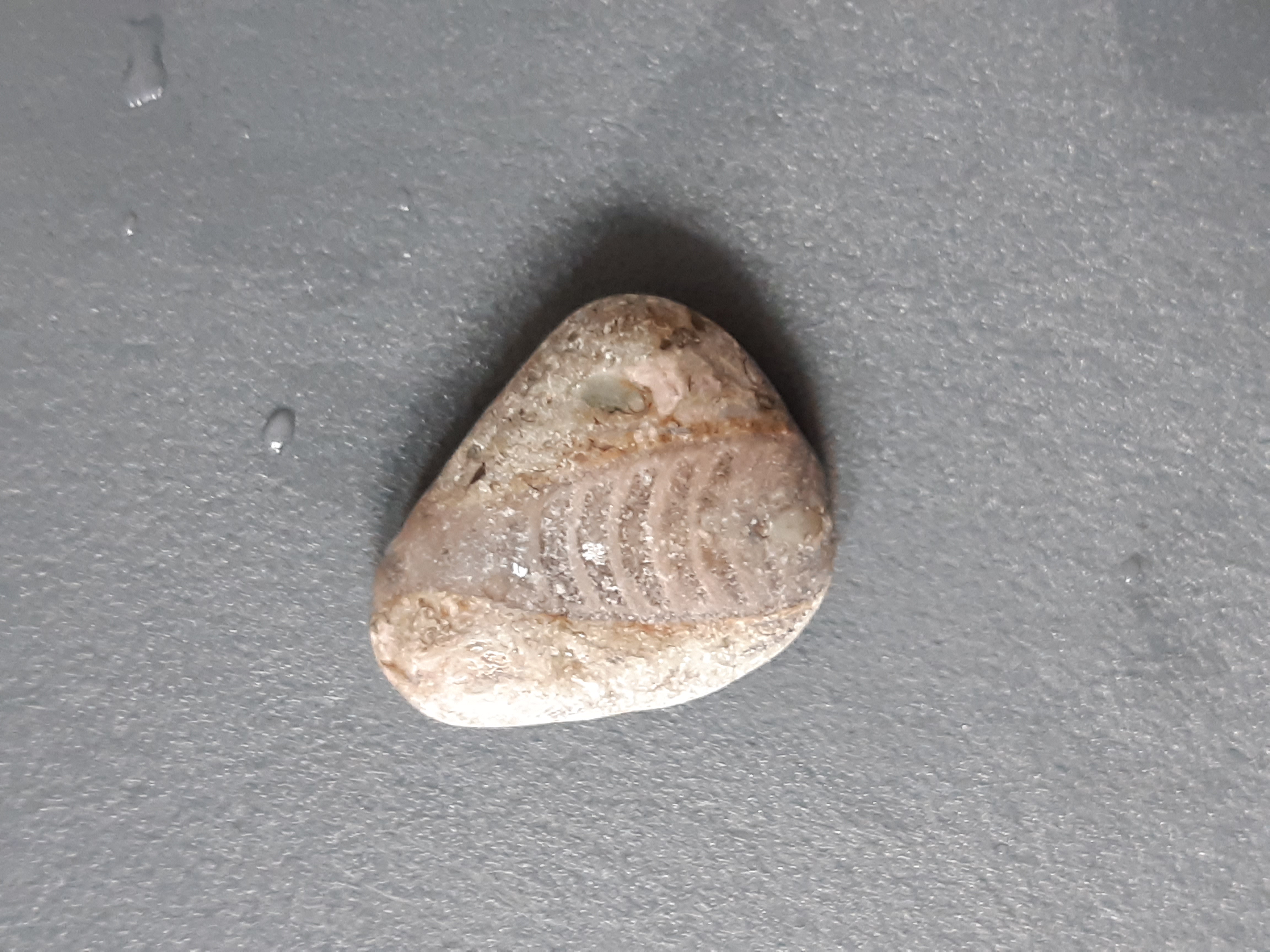 Jest to przekrój przez fragmokon paleozoicznego (najpewniej sylurskiego) głowonoga. Widać komory oddzielone przez septa (przegrody).