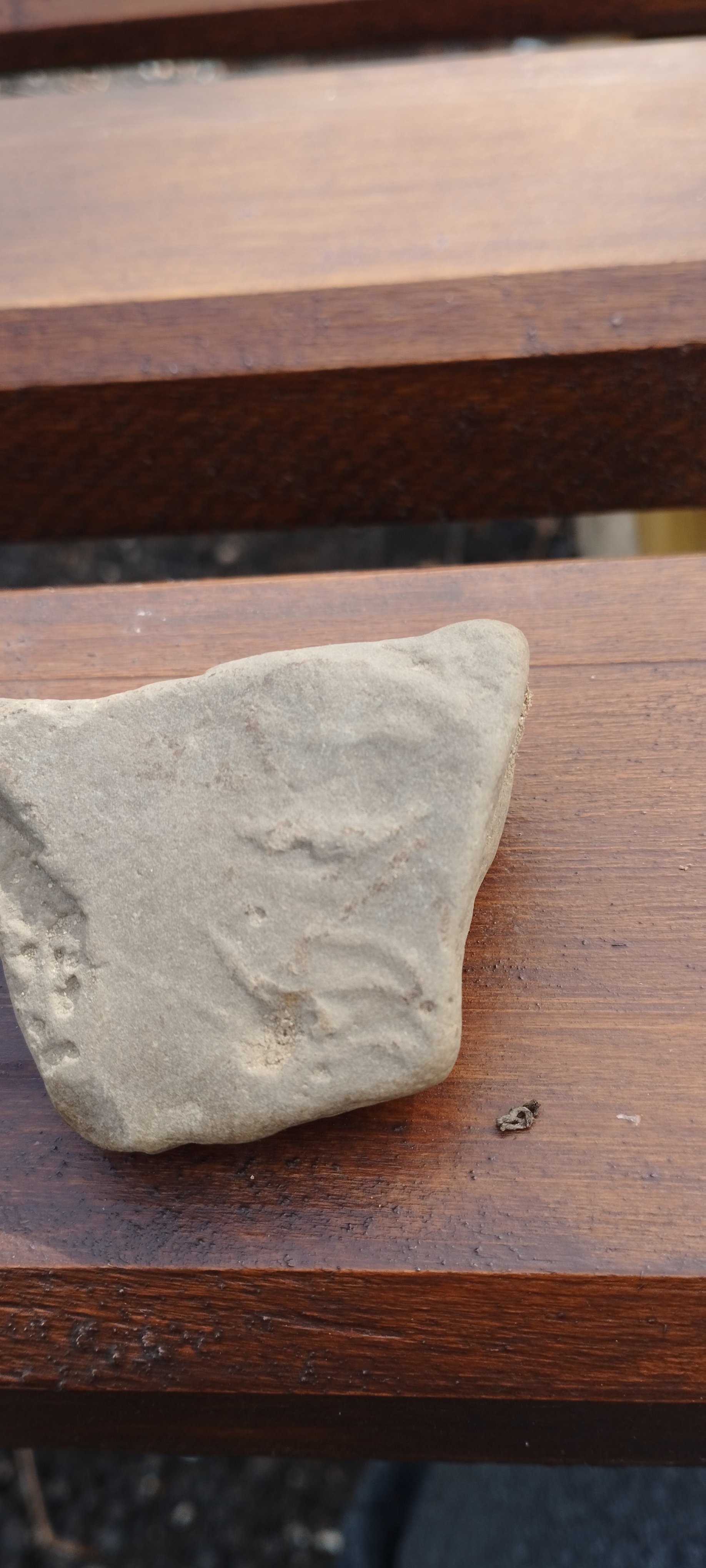 Nie widzę tutaj tropów. Czy to jakieś ichno czy struktury sedymentacyjne, coś innego- nie wiem, nie znam szczegółów znaleziska