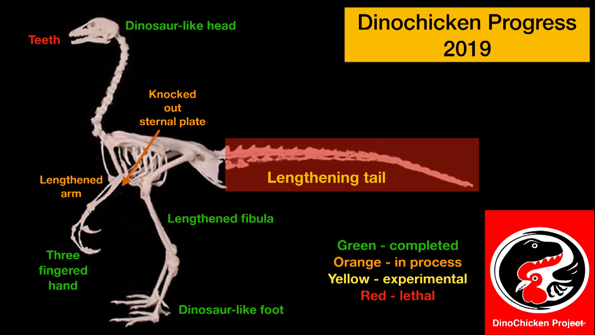 Cześć. Za pewne wielu z was słyszało o projekcie Jacka Hornera, którego założeniem było stworzenie żywego dinozaura poprzez modyfikowanie genomu kurczaka, tak, by "wybudzić" w nim uśpione geny jego nieptasich dinozaurowych przodków i stowrzyć chickenosaura. W wywiadzie z 2017 r.- https://www.youtube.com/watch?v=iw7fSAz ... sicOutpost (około 27 minuty) Horner stwierdził, że stworzenie dinozaurowych kończyn i głowy zostało już osiągnięte, jednak wciąż pracują nad ogonem (choć słyszałem, że podobno nie jest to już możliwe, albowiem geny odpowiedzialne za ogon miały zostać bezpowrotnie utracone).