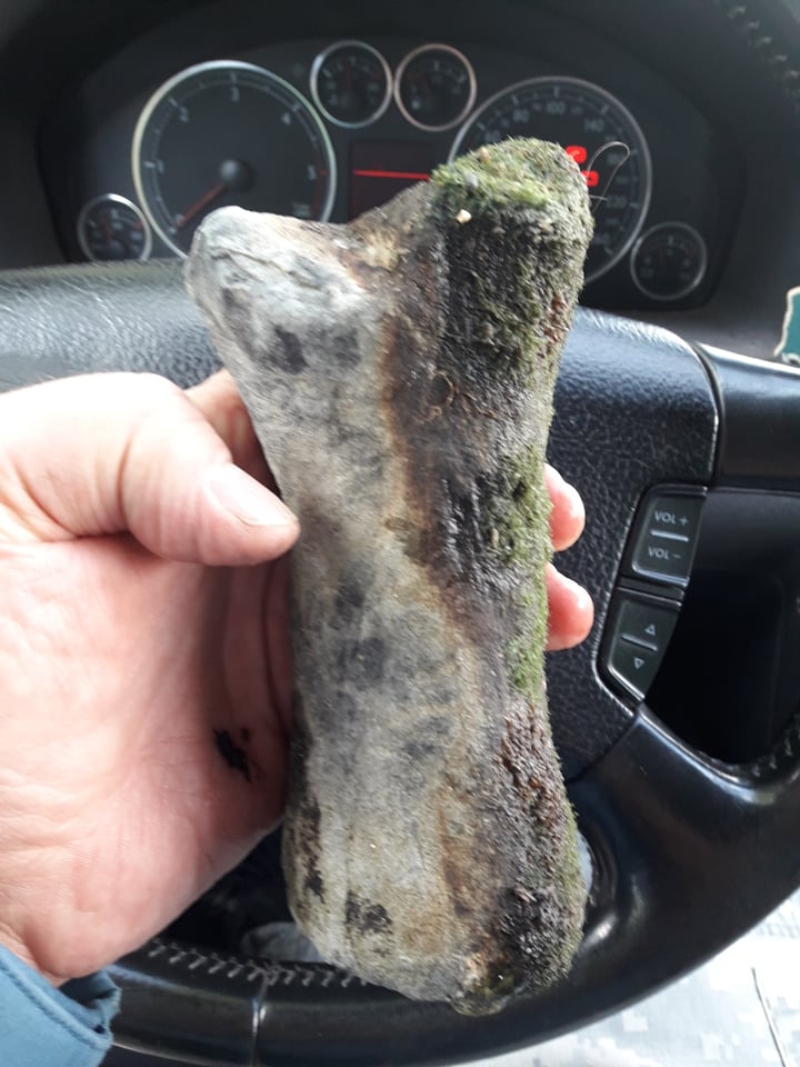 Próbuję zidentyfikować taką skamieniałą kość. Kość pochodzi z osadów naniesionych przez lodowiec (sąsiedztwo głazów narzutowych) na terenie północnej Polski. Pierwotnie myślałem że to ułamana kość długa, ale po konsultacjach z weterynarzami to są dwie sugestie. To kość ssaka, ale weterynarze nie mają styczności ze skamieniałościami, więc może to być również jakiś inny kręgowiec. Drugie to to, co myślałem że jest złamaniem jest stawem więc to nie kość długa. Jeśli nie jest to kość długa to pewnie to kość śródstopia lub paliczek, więc zwierzak musiał być wyjątkowo duży. Jeśli tak to może to jakiś trąbowiec lub nosorożec?