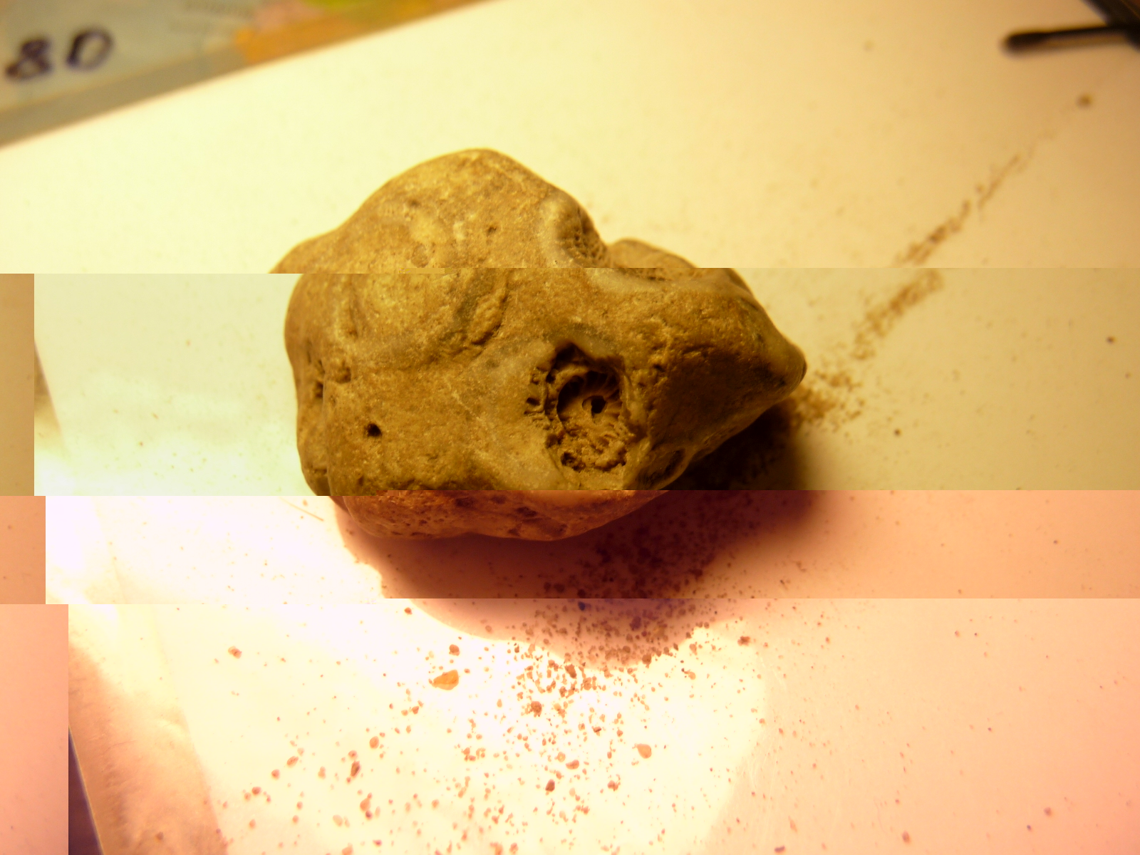 Tak więc podczas sprzątania w pokoju znalazłem kamień z mojej starej kolekcji nietypowych kamieni. Po obejrzeniu kamyczka okazało się, że są w nim skamieniałe "rurki" (ok 6 sztuk).