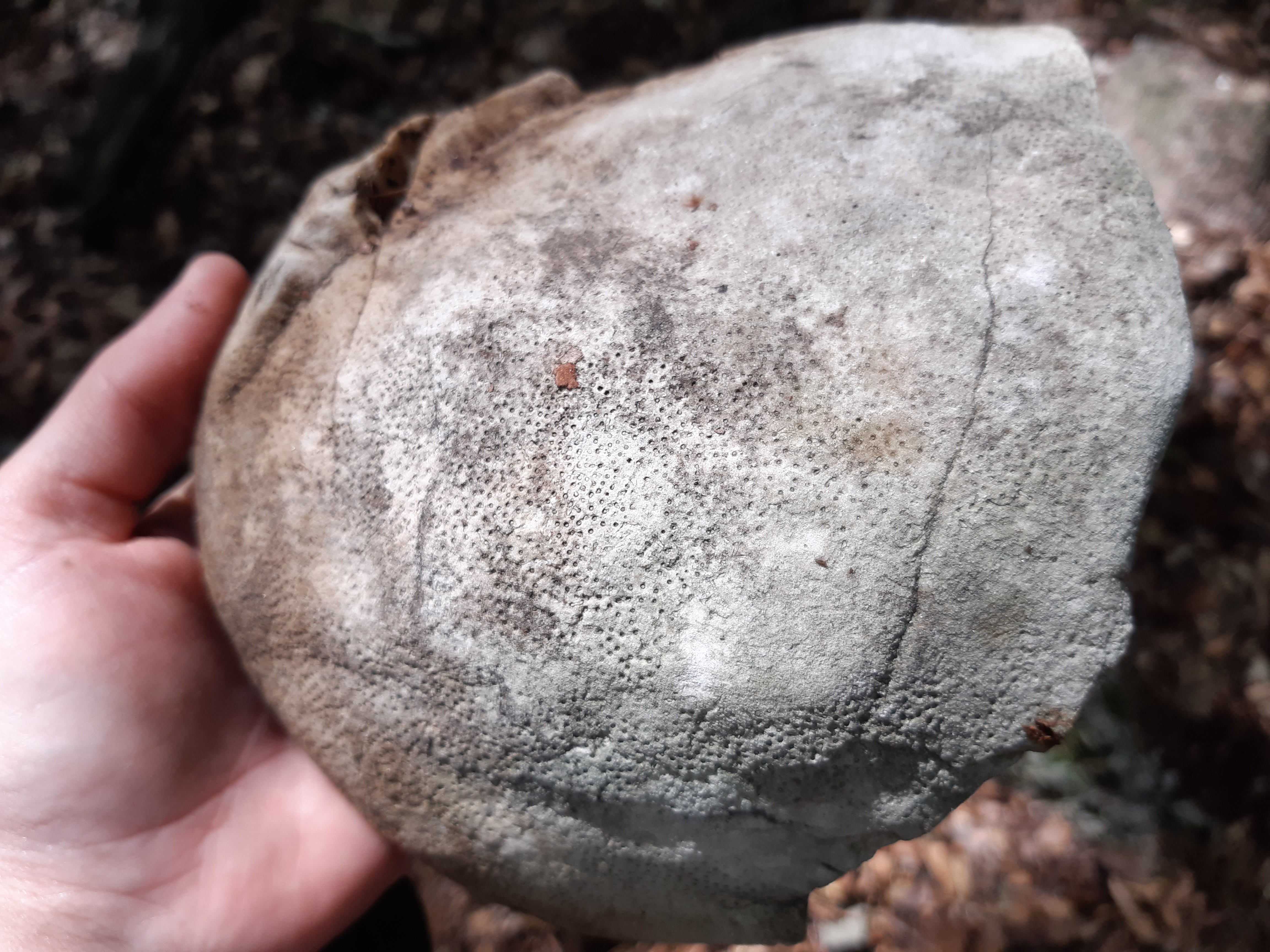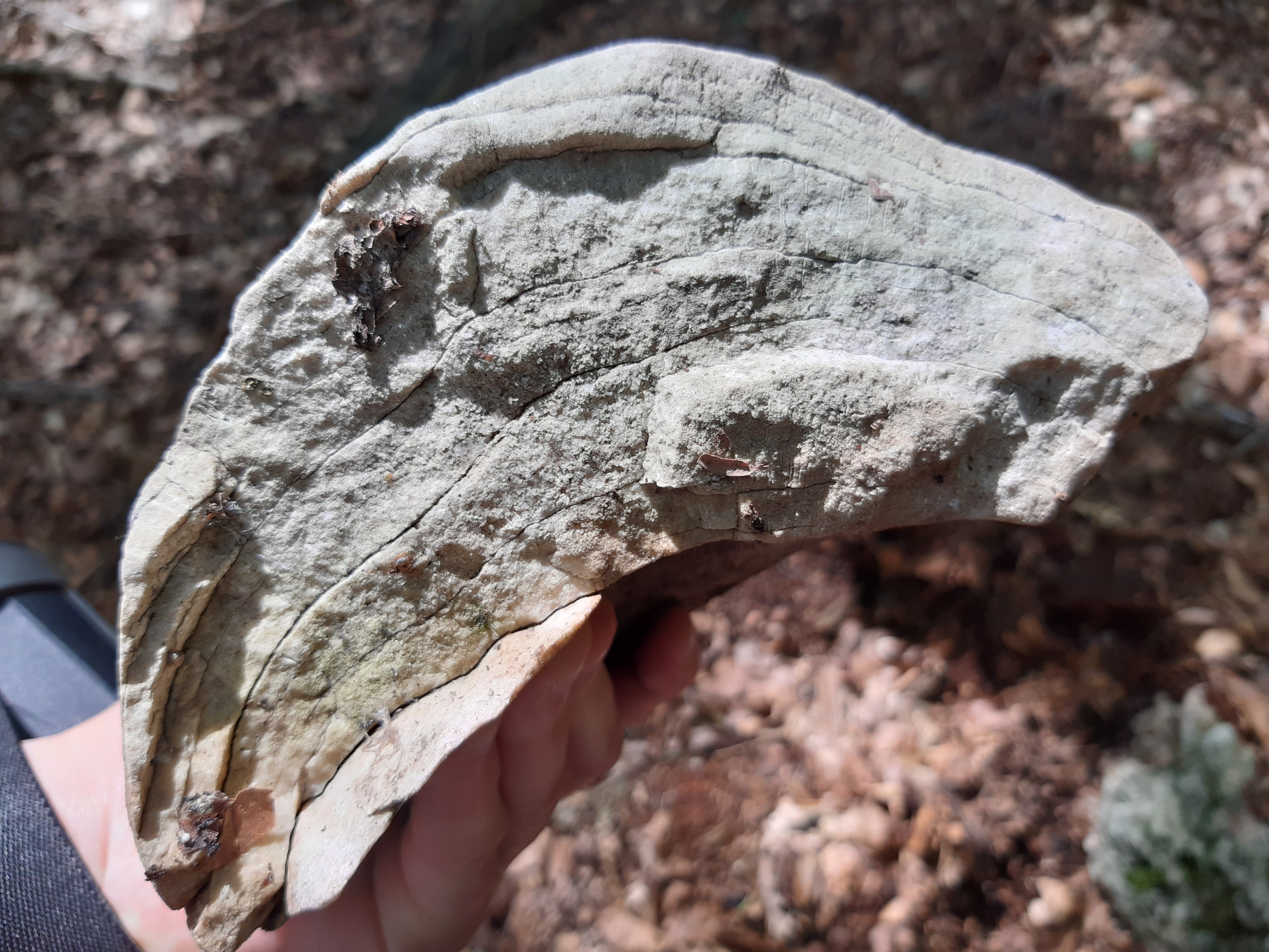 Dzień dobry, dziś znalazłam w lesie ciekawy kamień. Wygląda mi na skamieniałą roślinę, ale to tylko moje domysły. Ma kształt huby nadrzewnej. Poszukuję pomocy w identyfikacji.