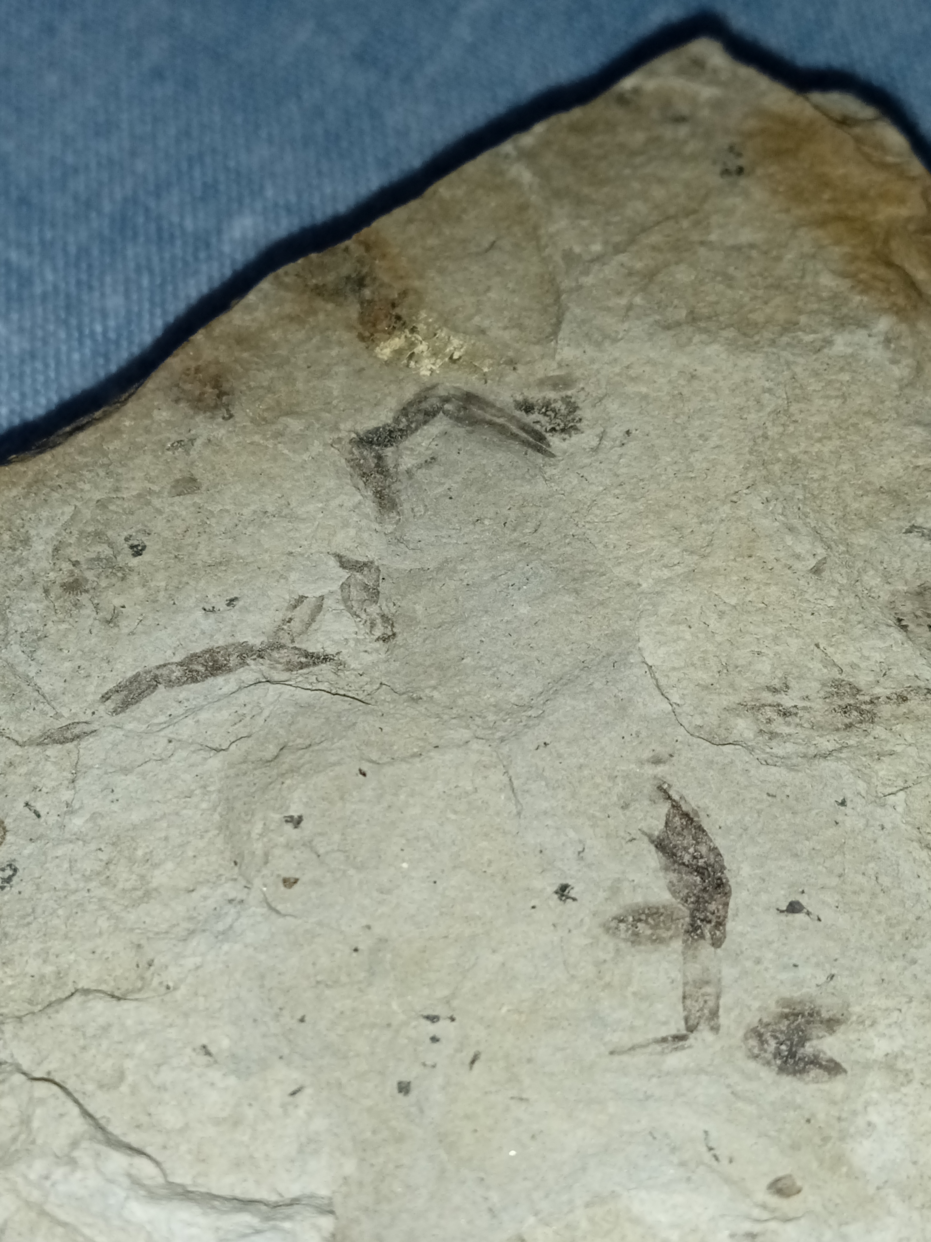 Czy to skamieniałe nogi jakiegoś stawonoga? Mają długość około 1 cm. Kamień nie wiem skąd przywieziony, ale leżał w ogrodzie.