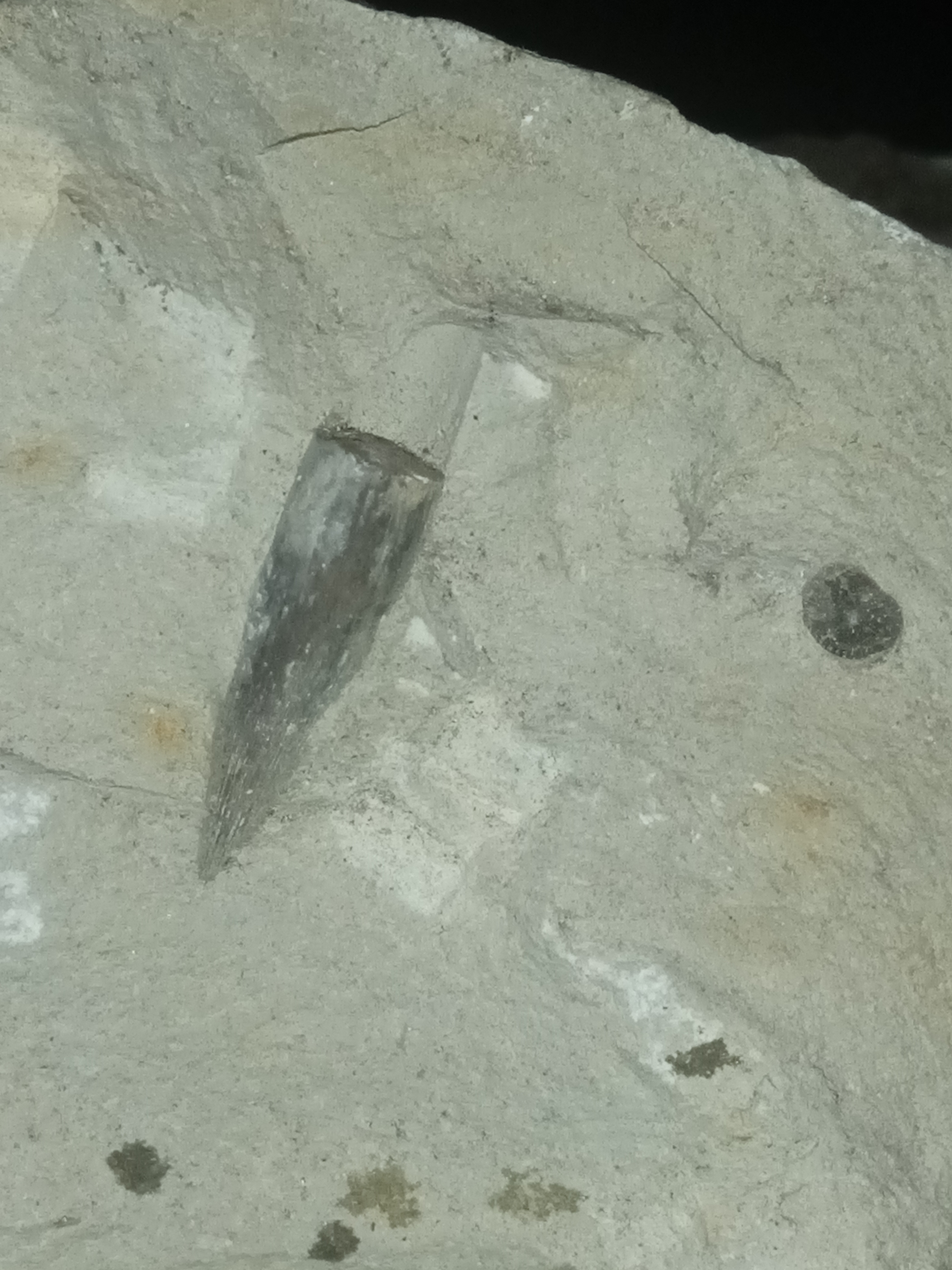 Dzień dobry. Czy to Macka belemnita? Kamień zawiera również rostrum belemnita i odciski amonitów. Nie wiem skąd pochodzi. Z góry dziękuję.