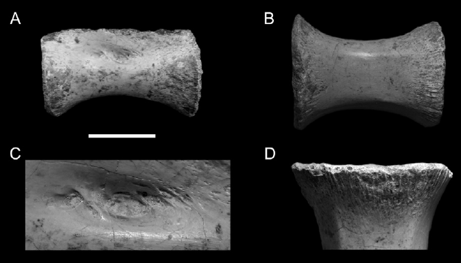 Zdjęcie przedstawia kręg ogonowy pewnego teropoda. Należy podać do jakiej grupy należy, formację oraz państwo z którego pochodzi.