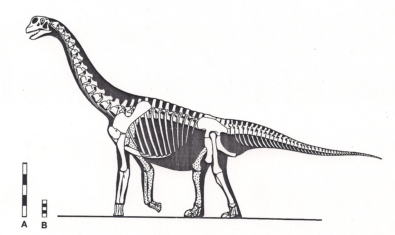 Rekonstrukcja według G. Paula; skala 1 m A dla młodocianego, B dla dorosłego
