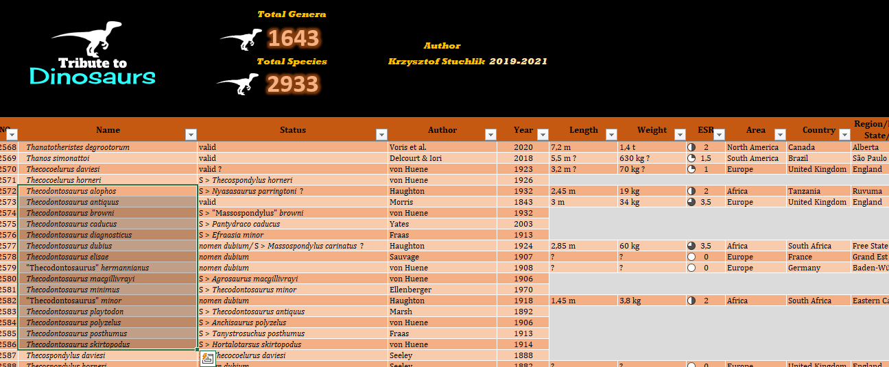 Sugeruję dla kompletności omówić wątpliwe gatunki, jak np. u megalozaura.