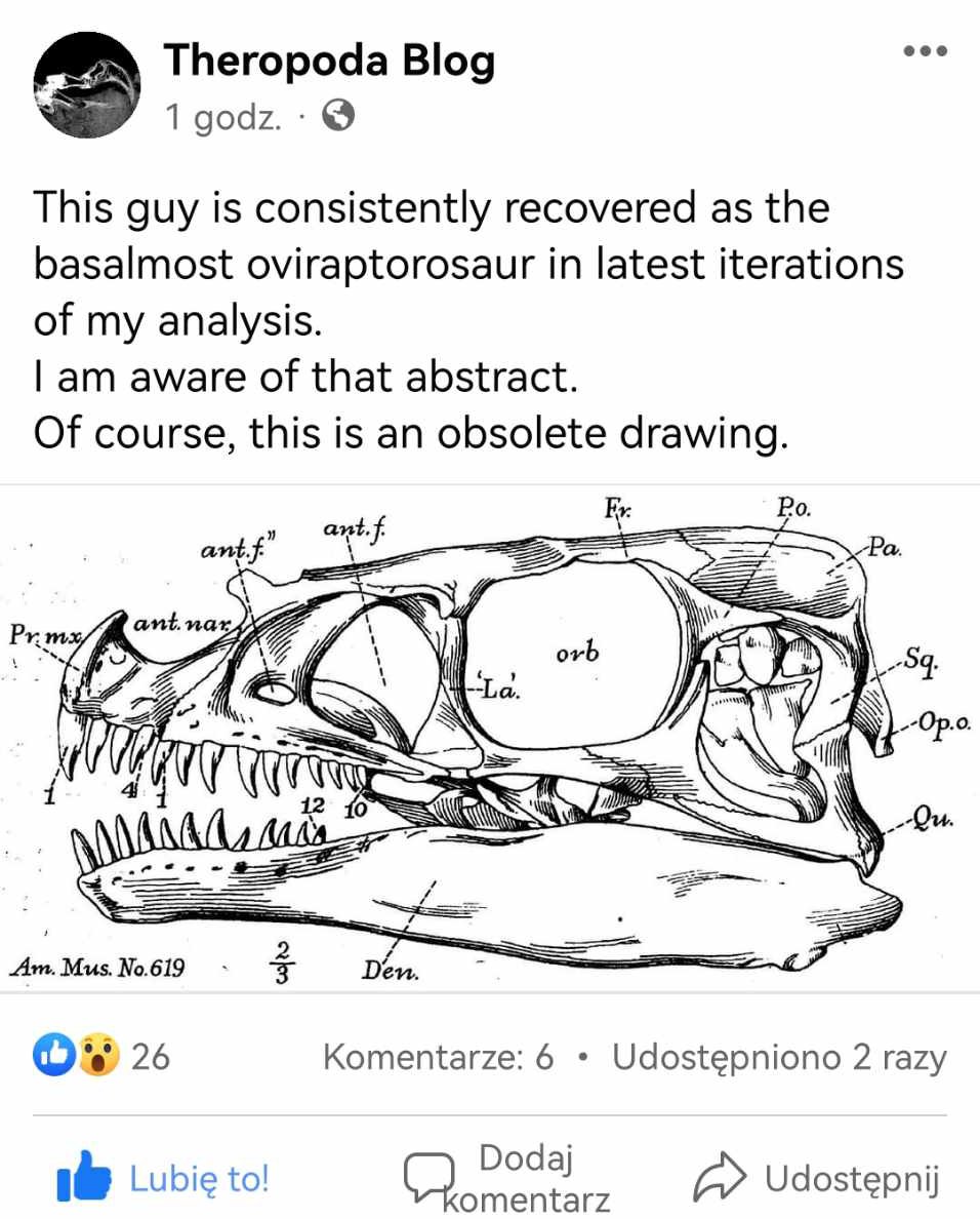 Mei stosunek ten jest mniejszy - i to tylko o 1 pkt procentowy; u innych teropodów czaszka ma mniej więcej tą samą długość co udo),