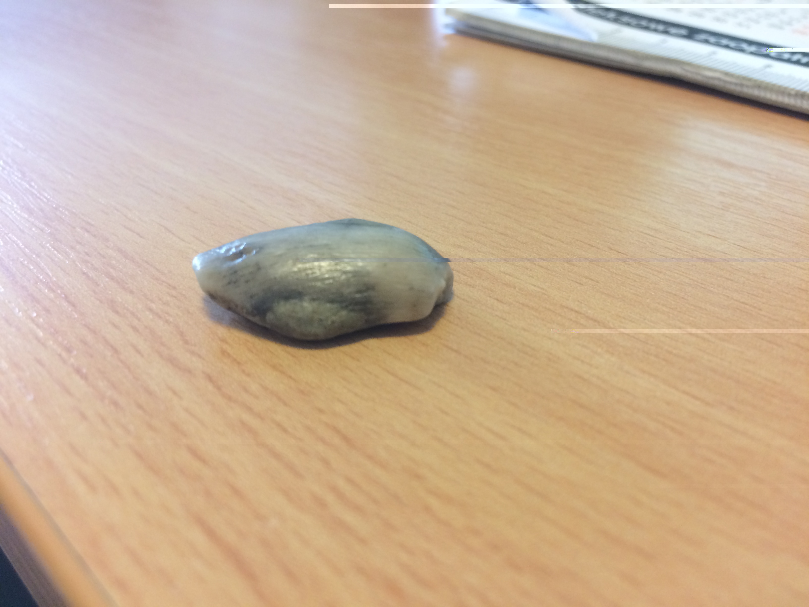 Dzień dobry. Podczas spaceru znalazłem kamień, który wyglądał "nienormalnie". Według mnie jest to ząb. Według kolegów - zwykły kamień. Co najmniej nie wydaje mi się on zwykły - delikatne rowki na powierzchni. Ostre zakończenie. Z drugiej strony zakończony jakby brakującym korzeniem.