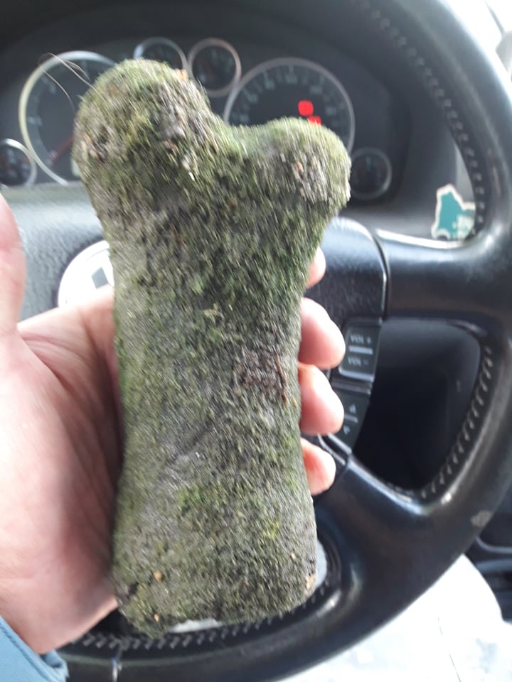 Próbuję zidentyfikować taką skamieniałą kość. Kość pochodzi z osadów naniesionych przez lodowiec (sąsiedztwo głazów narzutowych) na terenie północnej Polski. Pierwotnie myślałem że to ułamana kość długa, ale po konsultacjach z weterynarzami to są dwie sugestie. To kość ssaka, ale weterynarze nie mają styczności ze skamieniałościami, więc może to być również jakiś inny kręgowiec. Drugie to to, co myślałem że jest złamaniem jest stawem więc to nie kość długa. Jeśli nie jest to kość długa to pewnie to kość śródstopia lub paliczek, więc zwierzak musiał być wyjątkowo duży. Jeśli tak to może to jakiś trąbowiec lub nosorożec?